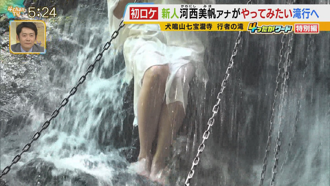 MBS新人・河西美帆アナ 最初の挨拶でいきなり胸チラ、谷間チラ!! 滝行&山道のお尻!【GIF動画あり】
